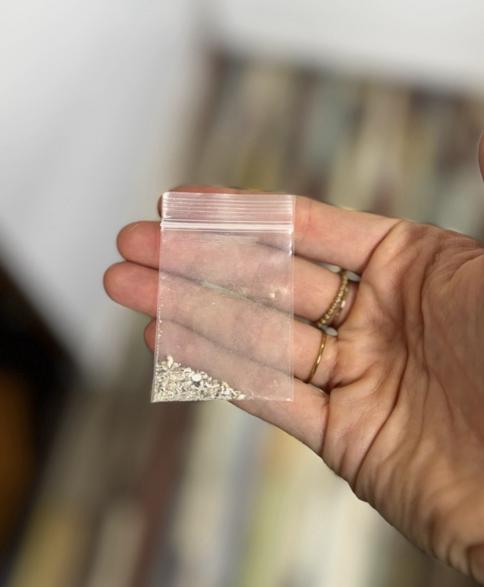 Na het plaatsen van je bestelling mag je een kleine hoeveelheid as opsturen in een stevig, goed afgesloten zipzakje of potje.